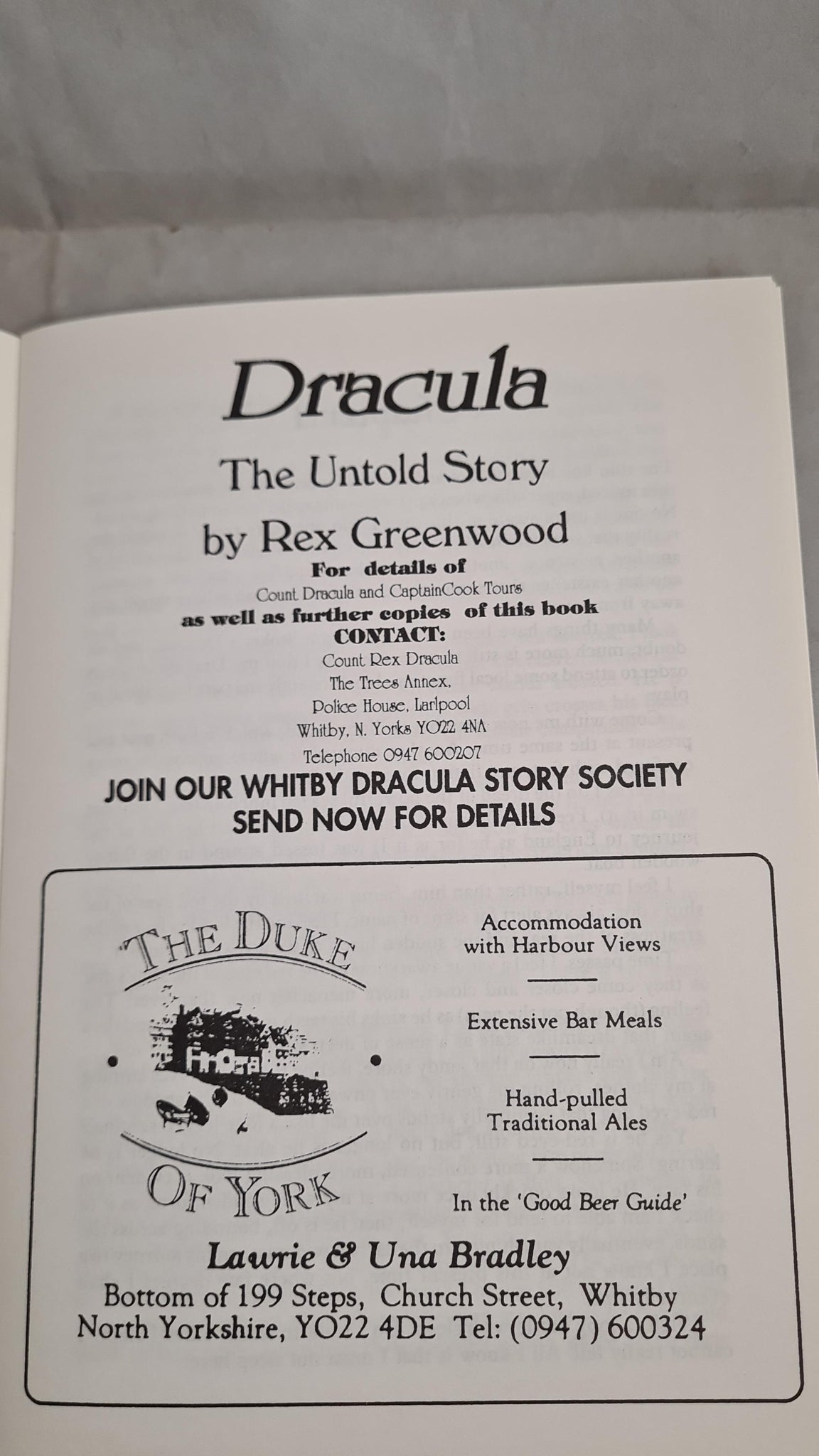 Signed to Introduction page by 'Count Rex Dracula'.